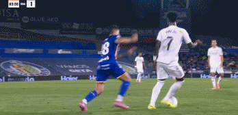 在前一天,巴萨凭借压哨绝杀暂时登顶,超越了皇马。为了争回榜首,皇马今天必须在客场战胜赫塔菲。比赛一开始,皇马就展开猛烈攻势。第7分钟,皇马发动快速反击,维尼修斯左路带球后精妙直塞,姆巴佩接球后突破至禁区前沿形成半单刀机会,但他的强力射门被赫塔菲门将索里亚奋力扑出。两分钟后,皇马再次进行类似进攻,姆巴佩晃过两名防守球员后大力低射,皮球擦着远门柱外侧飞出底线分钟,皇马持续施压,姆巴佩在禁区弧顶处迎球大力兜射,索里亚再次成功扑住球。第36分钟,楚阿梅尼也尝试远射,但皮球稍稍高出横梁。上半场结束前,皇马获得一个有利的任意球机会,阿拉巴主罚大力兜射,皮球绕过人墙直奔球门,但被索里亚奋力扑出。