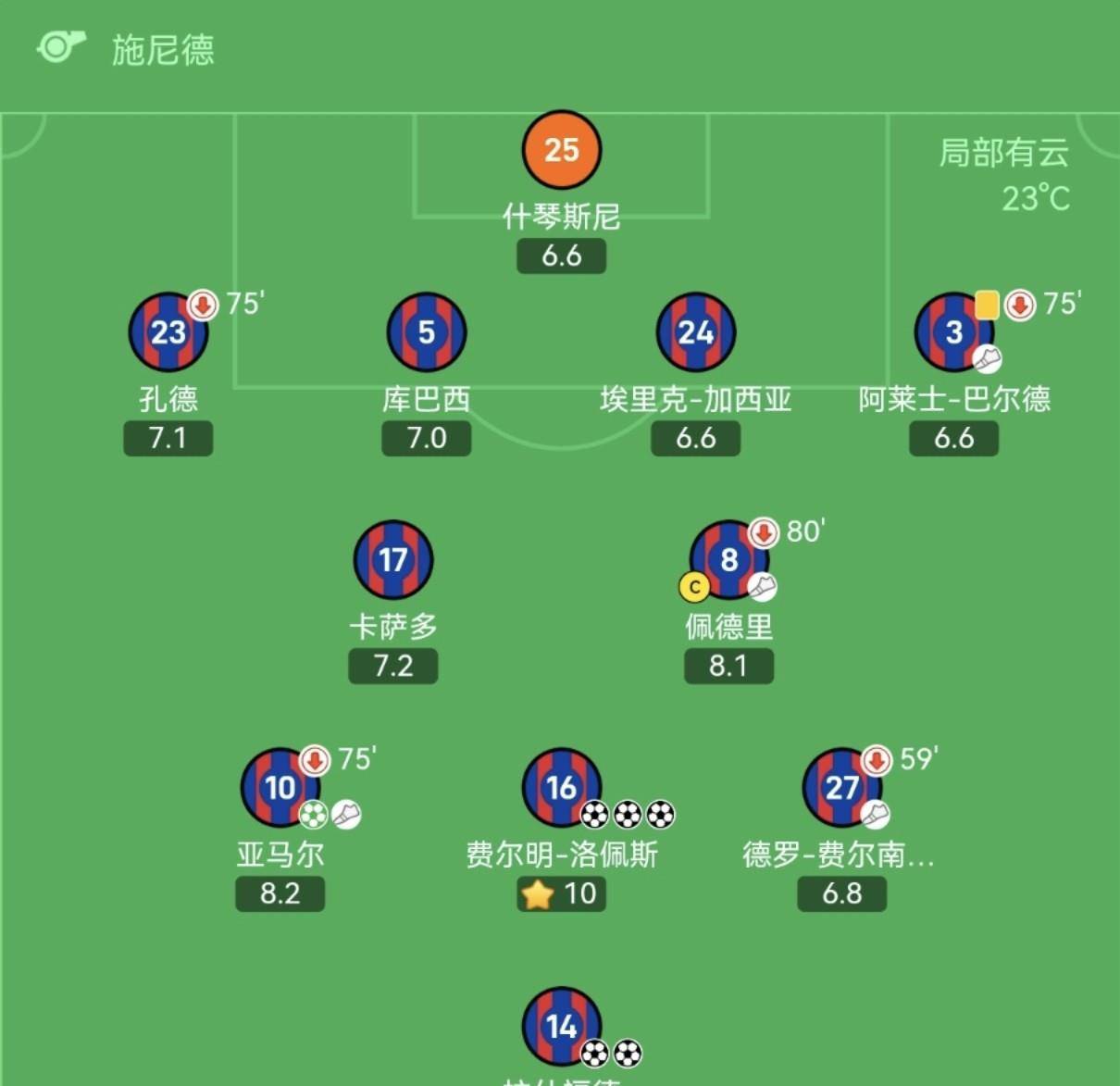 赛后,帽子戏法英雄费尔明毫无悬念当选最佳!梅开二度的拉什福德也获高分!这支巴萨,太可怕了!
