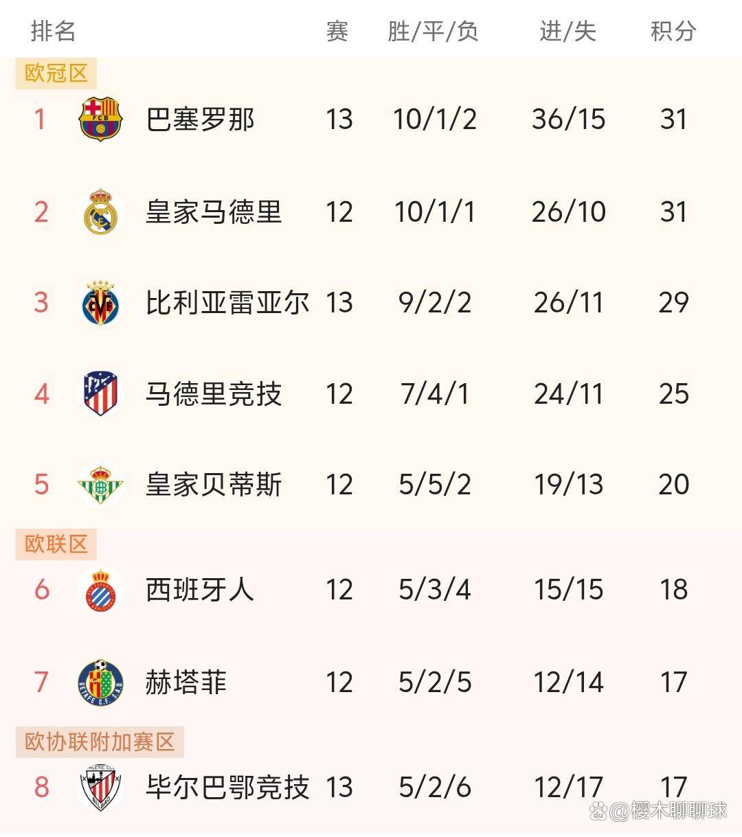西甲直播,西甲赛程,西甲积分榜,皇马vs巴萨直播,西甲比分预测/为中文用户提供2025赛季西甲联赛全方位资讯:免费高清中文直播入口、赛程表、积分榜更新、皇马与巴萨动态追踪、竞彩推荐与比分预测。2023年11月23日,西班牙足球甲级联赛第13轮激战正酣。在诺坎普球场,巴塞罗那队以一场酣畅淋漓的4比0大胜毕尔巴鄂竞技队。此役过后,巴塞罗那以10胜1平2负的优异战绩,暂时超越了尚未出场的皇家马德里,攀升至积分榜首位。皇家马德里将在本轮客场挑战埃尔切,他们能否守住榜首的宝座,至少需要拿到一场平局。本赛季,皇马与巴萨的表现均称得上稳健,尽管偶有闪失,但两队的积分差距始终十分胶着。随着马德里竞技赛季初状态的低迷,本赛季西甲联赛的争冠格局已从昔日的三强鼎立,演变成了如今的双雄对决。