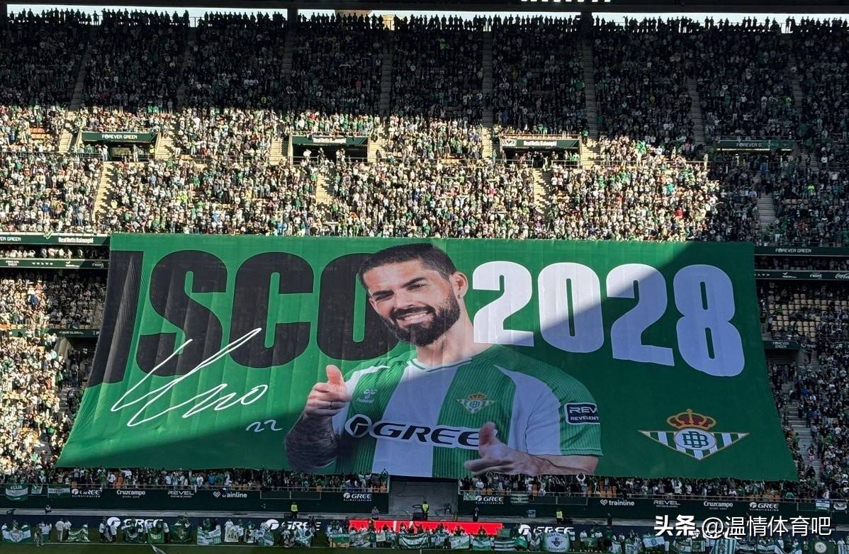 皇家贝蒂斯官方宣布,俱乐部与伊斯科续约至2028年,并在主场看台展示TIFO,庆祝这一特殊时刻。现年33岁的伊斯科在2023年夏天自由转会加盟皇家贝蒂斯,这位西班牙中场与俱乐部的原有合同将在2027年夏天到期。