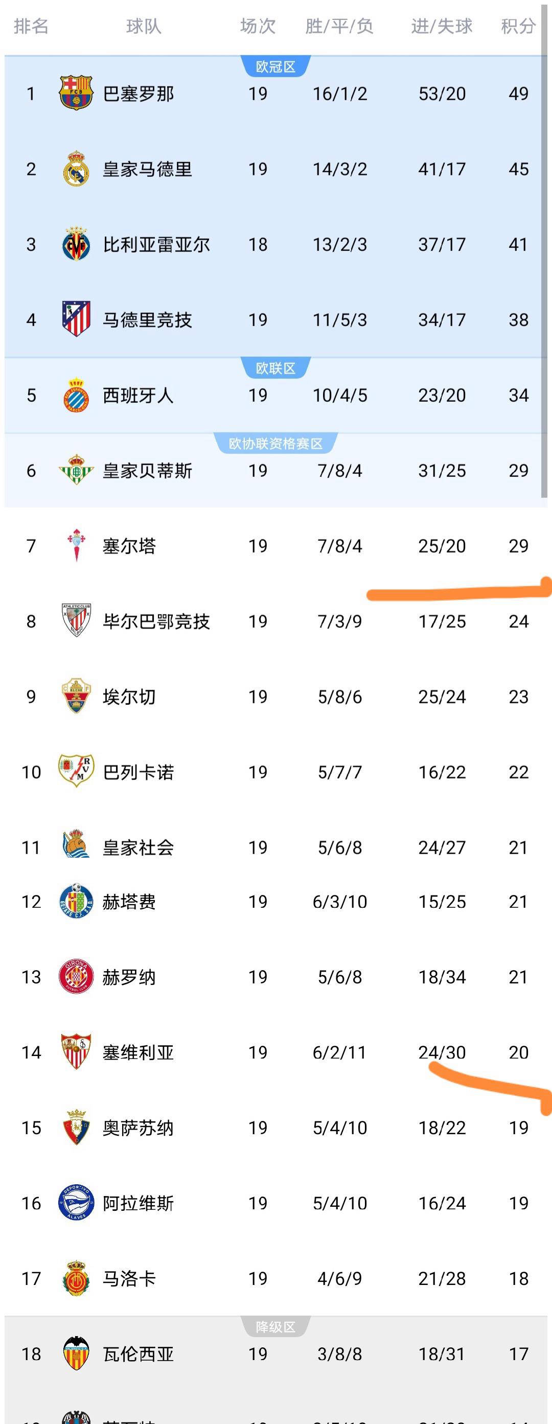 西甲直播,西甲赛程,西甲积分榜,皇马vs巴萨直播,西甲比分预测/为中文用户提供2025赛季西甲联赛全方位资讯:免费高清中文直播入口、赛程表、积分榜更新、皇马与巴萨动态追踪、竞彩推荐与比分预测。今天凌晨,西甲第19轮的全部比赛圆满结束,随着最后一场较量的落幕,西甲积分榜也随之更新。值得关注的是,在这场焦点战中,塞尔塔客场以1-0击败了主场作战的塞维利亚,为积分榜带来了新的变数。