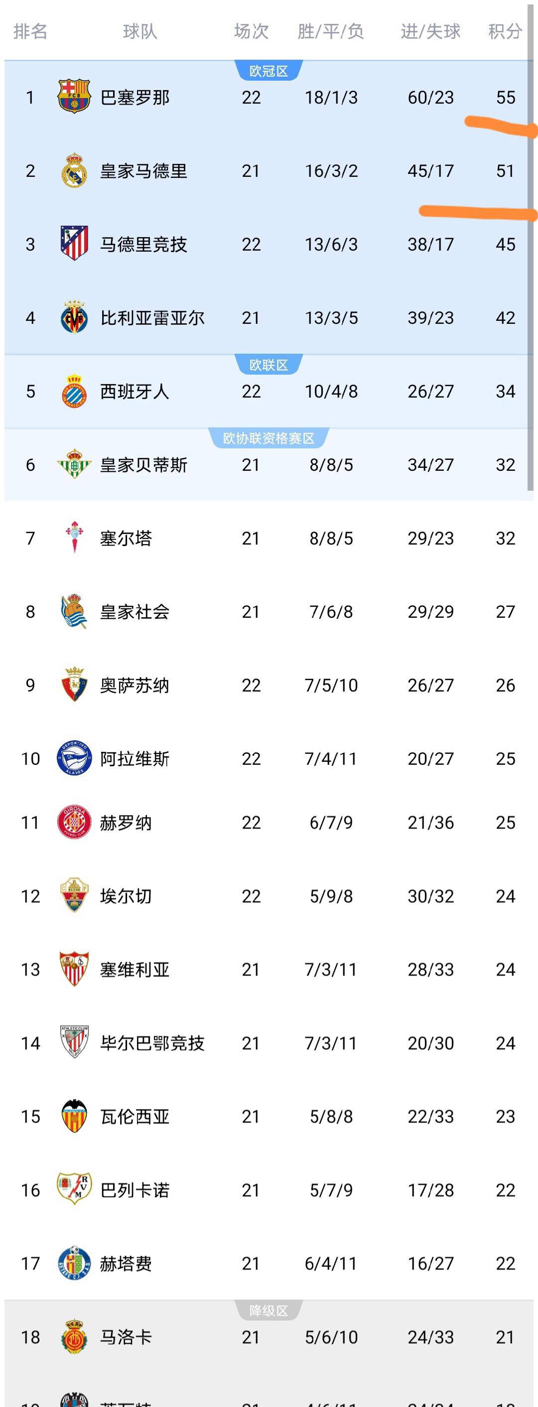 西甲直播,西甲赛程,西甲积分榜,皇马vs巴萨直播,西甲比分预测/为中文用户提供2025赛季西甲联赛全方位资讯:免费高清中文直播入口、赛程表、积分榜更新、皇马与巴萨动态追踪、竞彩推荐与比分预测。昨晚至今天凌晨,西甲第22轮进行了四场激烈的较量,其中包括巴塞罗那、比利亚雷亚尔和马德里竞技等劲旅的精彩表现。随着比赛尘埃落定,本轮结束后西甲积分榜也发生了明显变化。接下来,让我们详细回顾这些比赛及其对积分榜格局的影响。