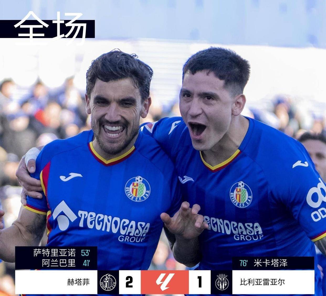 本轮西甲绝非只有皇马一家独舞,中游球队的较量同样爆出冷门,并充满了戏剧性。 排名第11位的赫塔菲在主场阿方索·佩雷斯球场,以2-1的比分击退了志在争夺欧冠席位的“黄色潜水艇”比利亚雷亚尔。