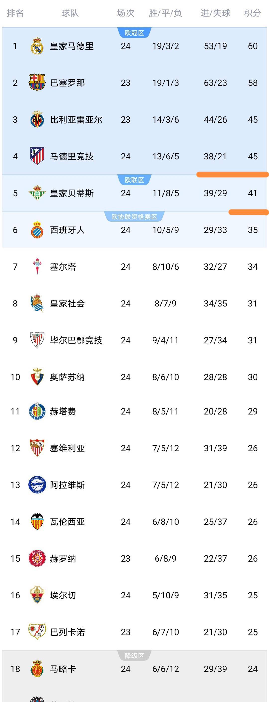 西甲直播,西甲赛程,西甲积分榜,皇马vs巴萨直播,西甲比分预测/为中文用户提供2025赛季西甲联赛全方位资讯:免费高清中文直播入口、赛程表、积分榜更新、皇马与巴萨动态追踪、竞彩推荐与比分预测。今日凌晨,西甲第24轮的4场比赛精彩落幕,马竞、瓦伦西亚、毕尔巴鄂竞技和皇家贝蒂斯等劲旅悉数登场,赛后积分榜格局发生了显著变化。下面我们详细分析这几场比赛的结果及积分榜形势。