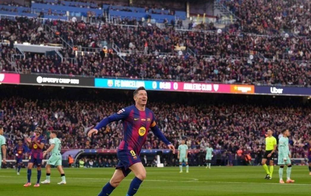 比赛一开始,巴萨就打得挺有气势。第4分钟,亚马尔带球往前推进,到了弧顶位置被对方抢断了。不过很快,毕尔巴鄂那边传接球失误,莱万拿到球后直接穿裆过了戈罗萨贝尔,一脚爆射!虽然乌奈·西蒙扑了一下,但球还是进了!1-0,巴萨先开张!