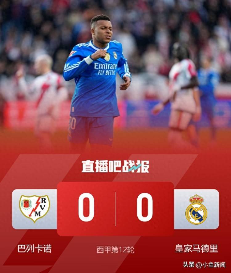 西甲直播,西甲赛程,西甲积分榜,皇马vs巴萨直播,西甲比分预测/为中文用户提供2025赛季西甲联赛全方位资讯:免费高清中文直播入口、赛程表、积分榜更新、皇马与巴萨动态追踪、竞彩推荐与比分预测。北京时间11月9日23:15,2025-26赛季西甲联赛第12轮,巴列卡诺在主场巴列卡斯球场迎战皇家马德里。比赛上半场双方虽然都有不少进攻机会,但未能破门;下半场局面依旧僵持,最终以0-0的平局收场。虽然皇马在比赛中未能延续胜利势头,但依然以5分优势领跑西甲积分榜,四连胜的纪录也因此终止。