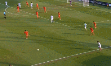 这一次也是一样的道理,左边中卫贺一然拿球后突然起速摆脱,随后送出直塞。中卫能这样处理球,就能减轻中场的负担。
