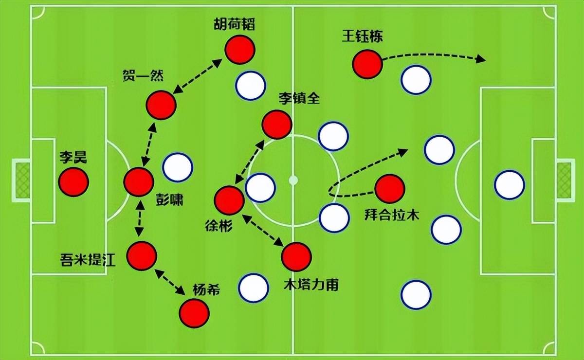 就像是这一次,中卫吾米提江拿球的同时,后腰徐彬去到右边路,原本右边翼卫的杨希前插到很靠前的位置。