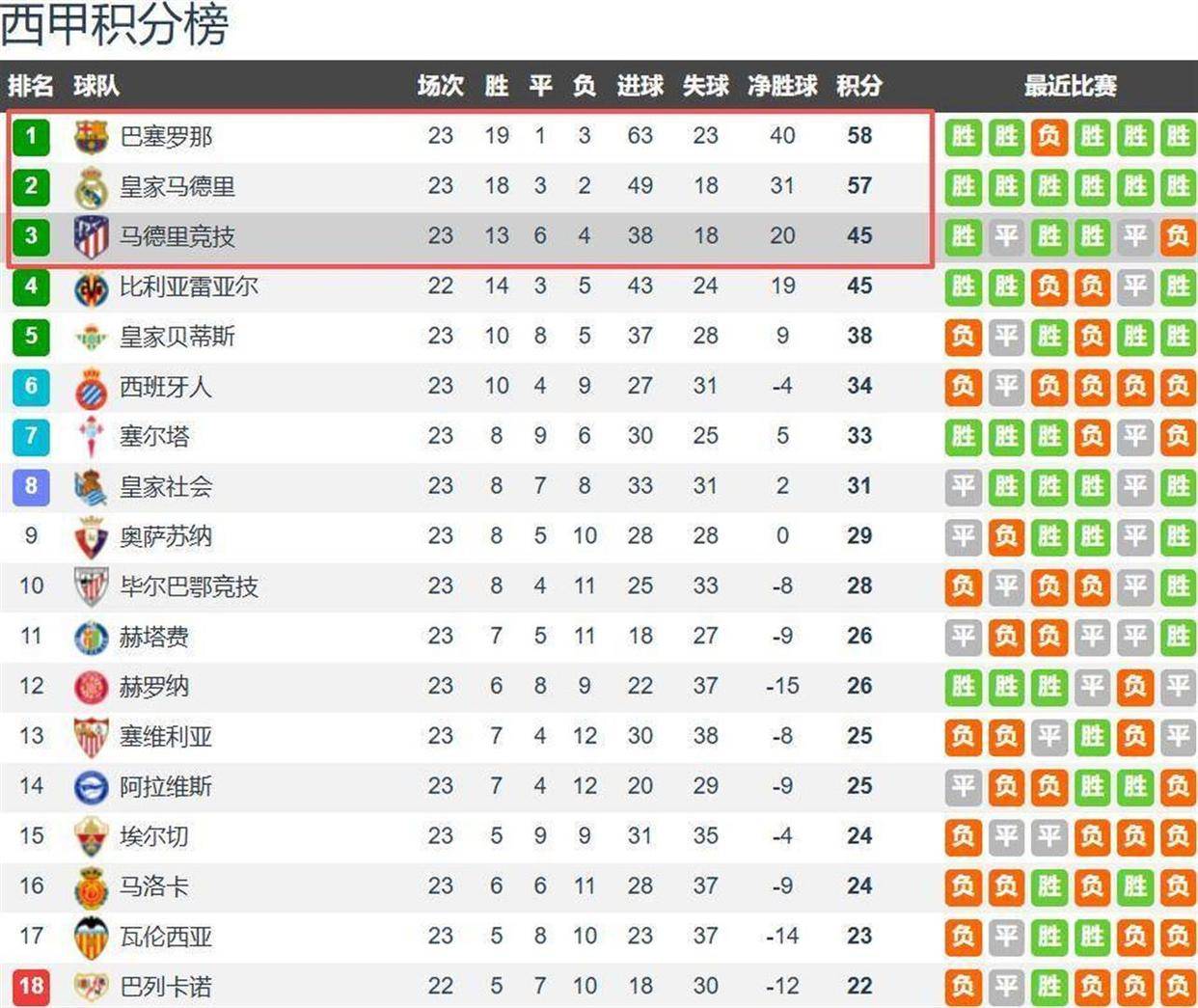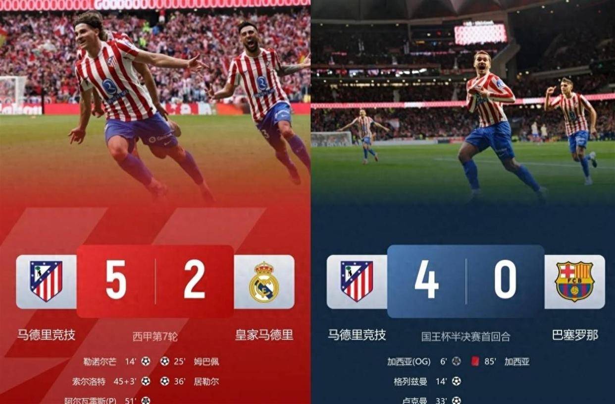 但令人费解的是,这支能够以5-2横扫皇马、4-0击溃巴萨的球队,在西甲联赛中的表现却完全是另一番景象。 西甲23轮战罢,巴萨以58分领跑积分榜,皇马57分紧随其后,而马竞仅积45分排名第三。 马竞落后榜首巴萨13分,落后皇马12分,争冠希望基本破灭。 更讽刺的是,就在国王杯4-0大胜巴萨的前一个周末,马竞在联赛中主场0-1爆冷输给了皇家贝蒂斯。